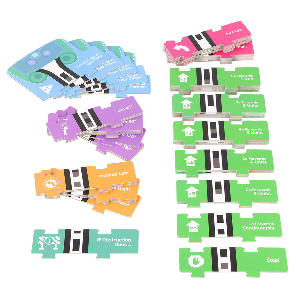 Die farbcodierten Blöcke orientieren sich am bekannten Farbschema von Microsoft MakeCode für micro:bit. So lernen Kinder Konzepte, die sich später auch auf digitales Programmieren übertragen lassen. Besonders praktisch ist, dass kein Tablet, kein PC und keine App nötig sind. Das gesamte System ist auf direktes, haptisches Lernen ausgelegt. Zusätzlich lädt das beidseitige Townscape-Poster zu kreativen Routen, Aufgaben und kleinen Geschichten mit dem Roboter ein.